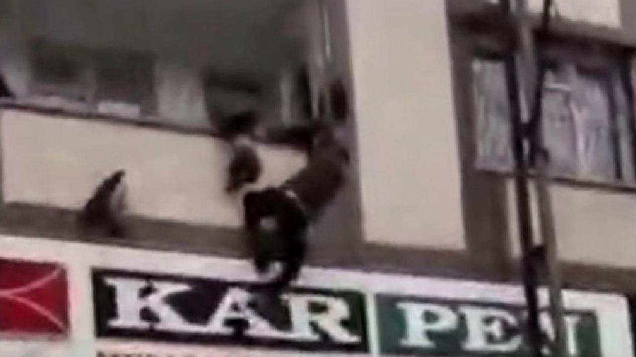 Bir vatandaş, elektrik direğinden balkona tırmanarak kafası demir parmaklıklarda asılı kalan çocuğu kurtardı.