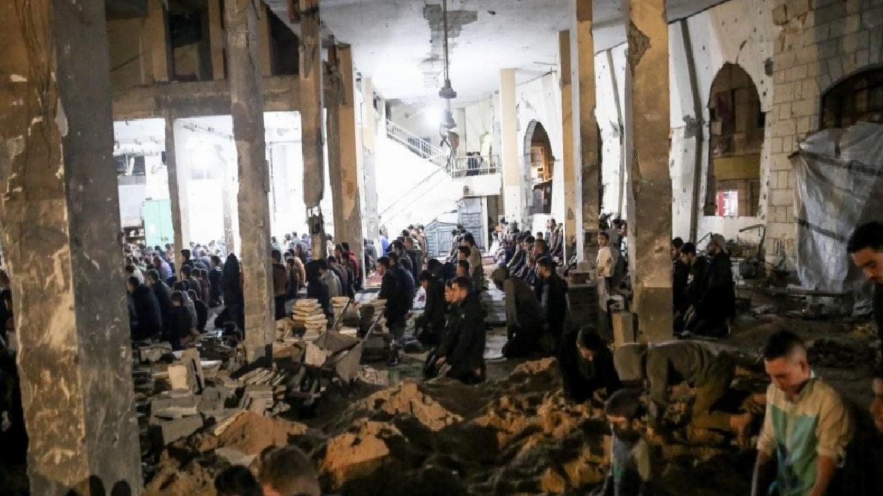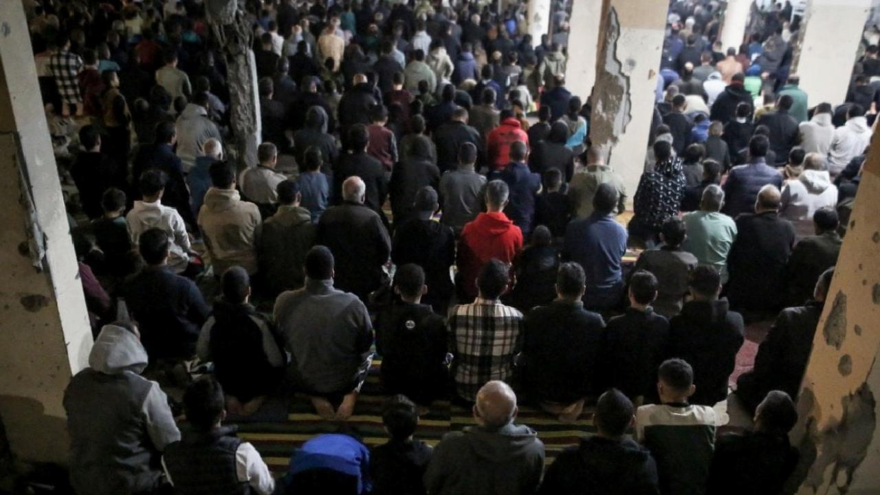 Gazzeliler, İsrail saldırılarında yıkılan ya da ağır hasar gören camilerin bulunduğu alanlarda ve kurulan çadır mescitlerde ilk teravih namazı için bir araya geldi. Önceki yıllarda cami avlularını ve meydanları dolduran kalabalıkların yerini, sınırlı sayıdaki ibadet alanında toplanan cemaat aldı.