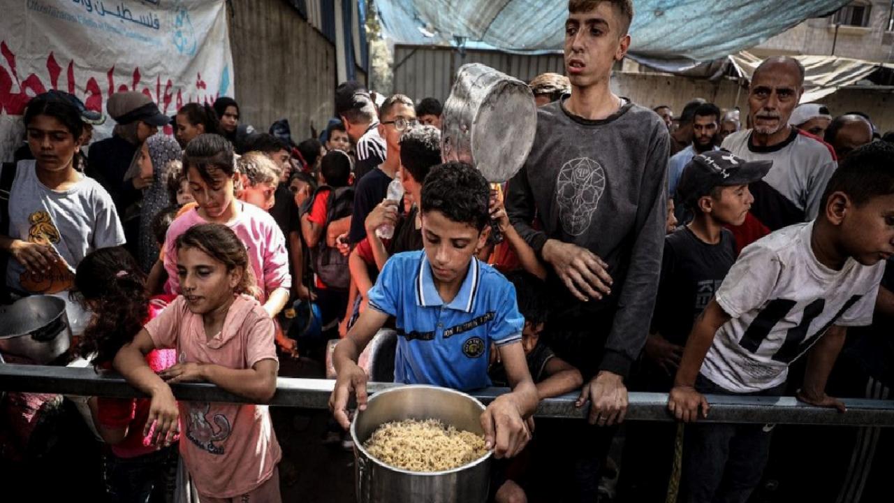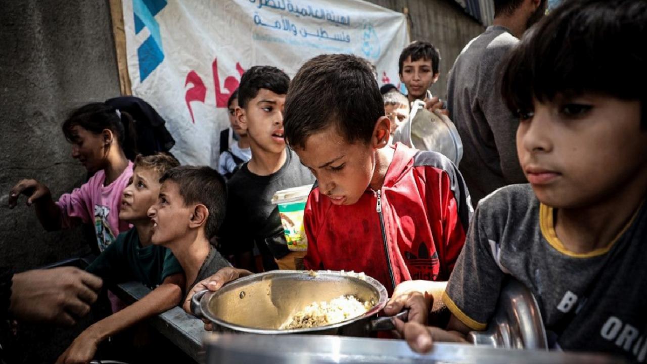 İsrail’in Gazze Şeridi’ne yönelik ablukası ve devam eden saldırıları nedeniyle gıdaya erişimde zorluk yaşayan Filistinlilere, bir hayır kurumu tarafından sıcak yemek dağıtımı yapıldı.