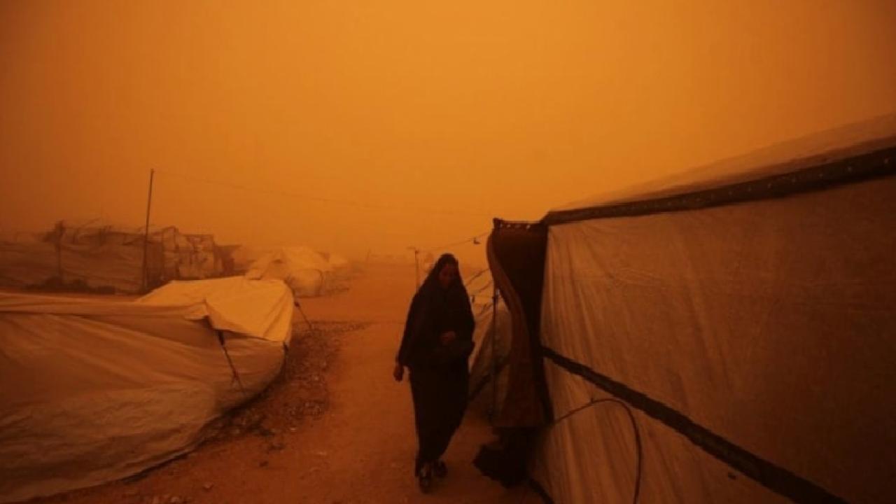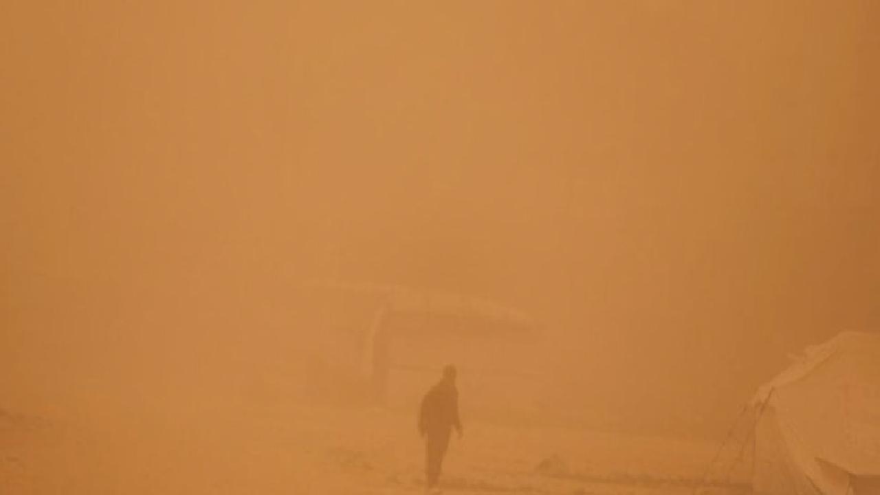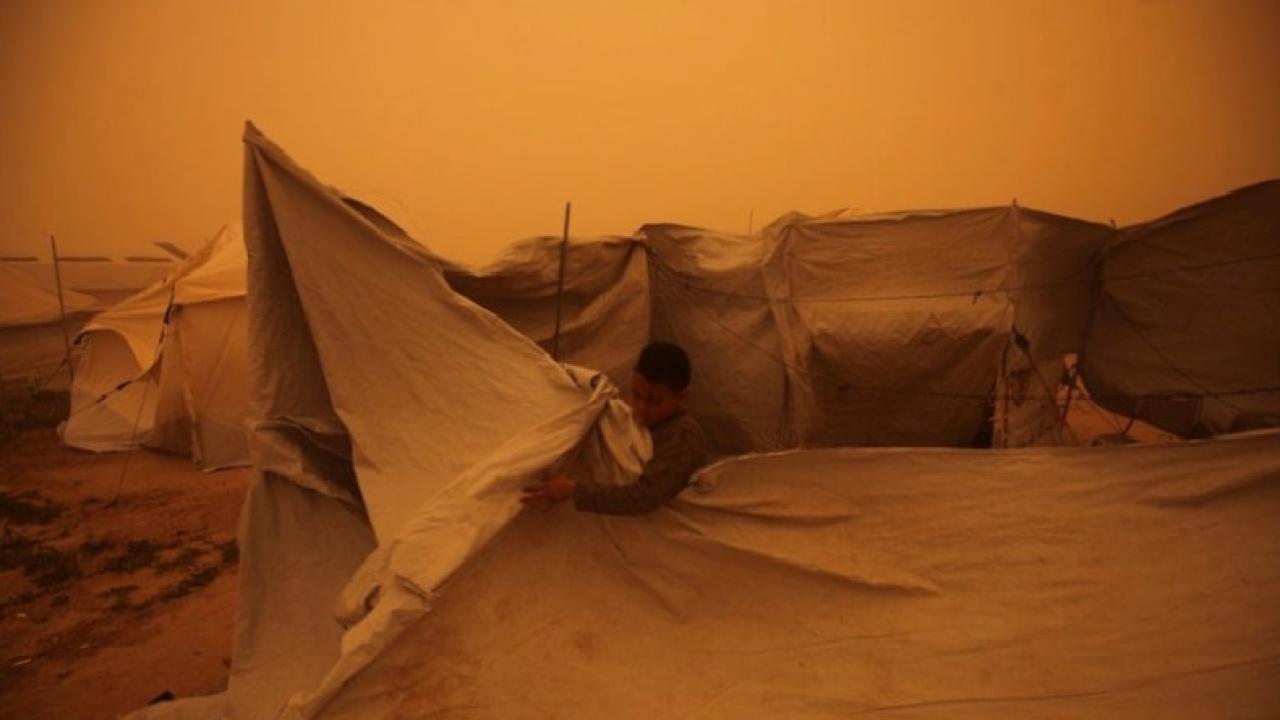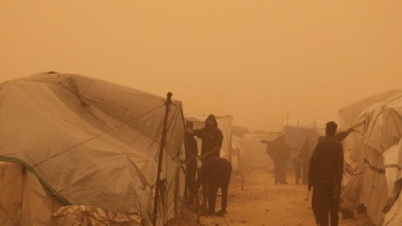 Etkili olan şiddetli rüzgar ve olumsuz hava koşulları kum fırtınasına neden olurken çok sayıda çadır hasar görme noktasına geldi.
