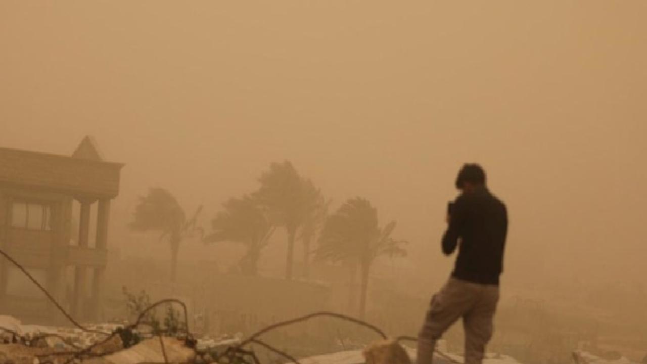Nuseyrat Kampı'ndaki çadırlarda yaşayan Filistinliler, kum fırtınasının ardından zor anlar yaşadı.