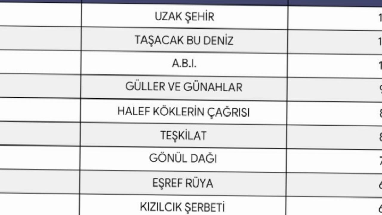 Haftanın en çok izlenen 10 dizisi ise şu şekilde: