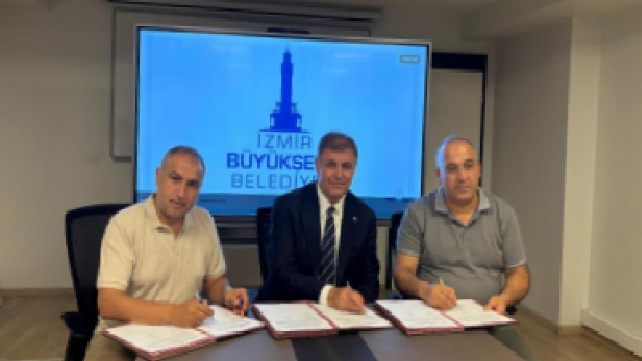 İzmir Büyükşehir Belediyesi ve iştiraklerinde iki toplu sözleşme daha anlaşmayla noktalandı. Grand Plaza'da Türkiye Otel, Lokanta, Dinlenme Yerleri İşçileri Sendikası (TOLEYİS), Türkiye Gıda ve Yardımcı İşçileri (TEKGIDA-İŞ) ve Türkiye, Ticaret, Kooperatif, Eğitim, Büro ve Güzel Sanatlar İşçileri (TEZ-KOOP-İŞ) sendikaları ile İztarım AŞ'de Türkiye TEKGIDA-İŞ ile TEZ-KOOP -İŞ arasında 13 saat süren toplu sözleşme görüşmelerinde mutabatkat sağlandı. Şirket çalışanlarına 1 Temmuz 2025’ten itibaren geçerli olmak üzere yüzde 30, ikinci altı ay TÜFE +1 oranında zam yapıldı. Toplu iş sözleşmesini İzmir Büyükşehir Belediye Başkanı Dr. Cemil Tugay, TEKGIDA-İŞ 7 No'lu Şube Başkanı Ömer Atabey, TOLEYİS İzmir Şube Başkanı Mustafa Çelik, TEZ-KOOP -İŞ 2 No'lu Şube Başkanı Ali Ayna imzaladı.