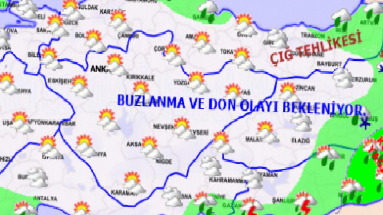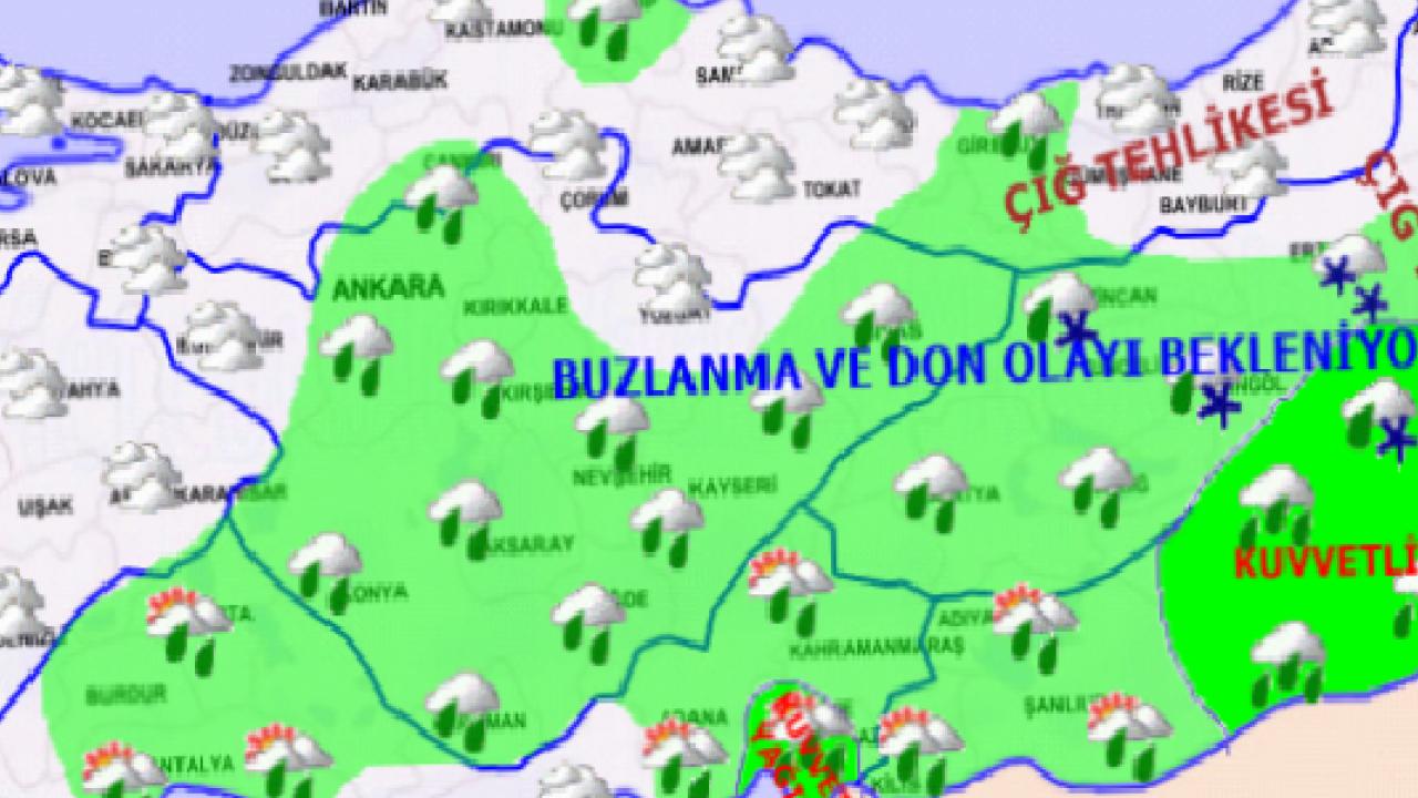Öte yandan iç ve doğu kesimlerde buzlanma ve don riski bulunurken, Doğu Karadeniz ile Doğu Anadolu’nun yüksek ve eğimli bölgelerinde çığ tehlikesi devam ediyor. Ayrıca Marmara’nın güneydoğusu, İç Ege, İç Anadolu’nun kuzeyi ve Batı Karadeniz’in iç kesimlerinde zirai don riski nedeniyle üreticilerin tedbirli olması istendi.
