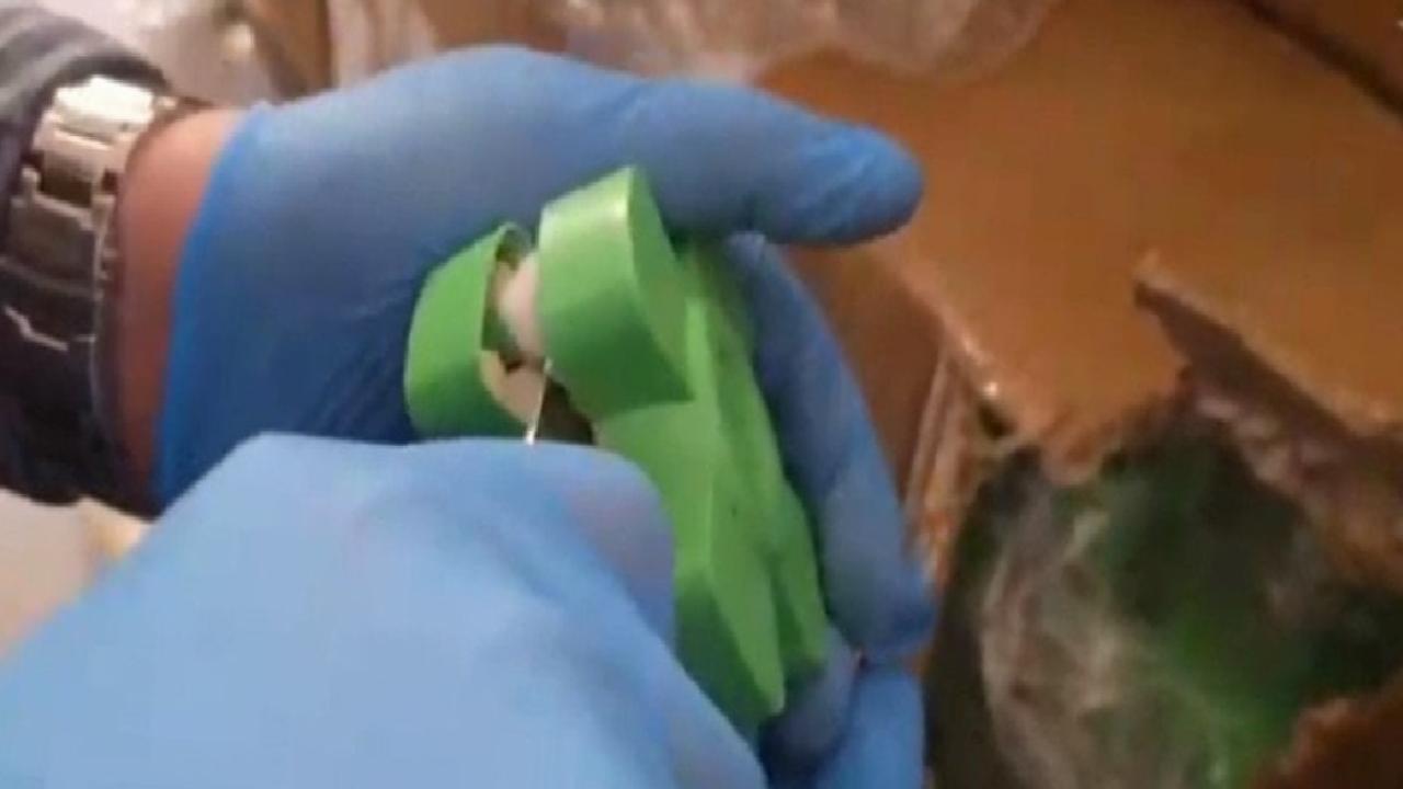 Narkotik köpeği ile gerçekleştirilen operasyonda, koliler içerisinde plastik pervanelere zulalanmış halde toplam 107 kilogram ağırlığında 642 bin adet Captagon hap ele geçirildi.