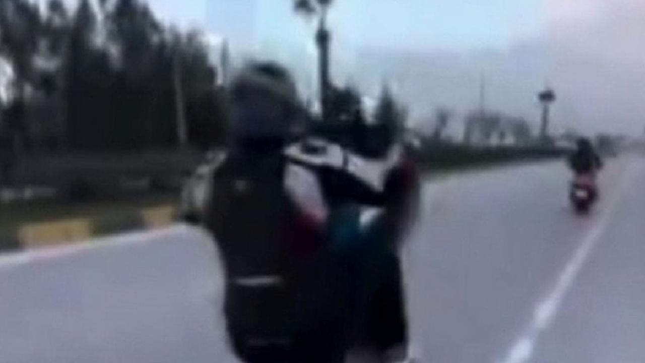 Paylaşılan görüntülerde motosikletin ön tekerini kaldırarak ilerlediği görülen sürücünün, video üzerine “Relax olacaksın baba” notunu düşmesi dikkat çekti.