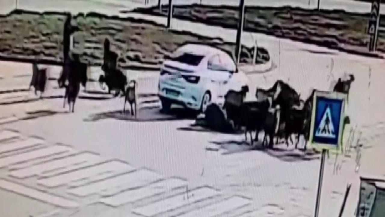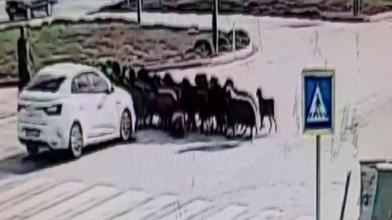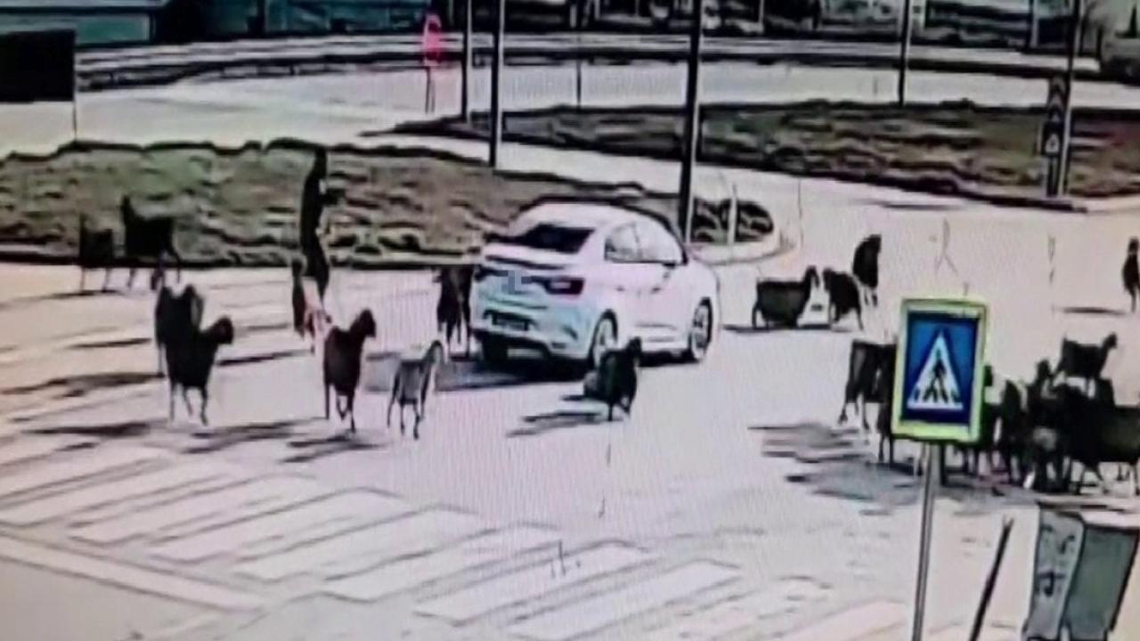 Kazaya ilişkin görüntüler çevredeki güvenlik kamerasına yansırken, hayvan sahibi Şahan ile otomobil sürücüsünün kazayı yara almadan atlattığı öğrenildi.