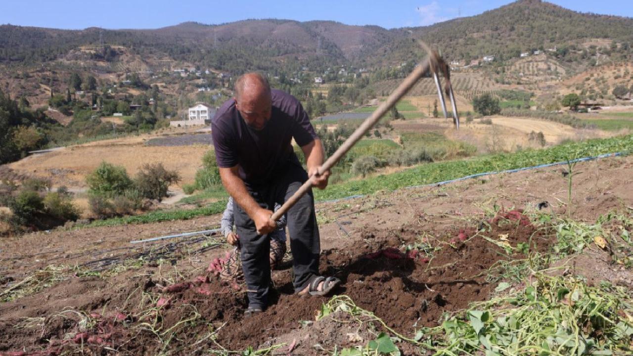 Ürün çeşitliliğinin fazla olduğu kentte, tatlı patates hasadı başladı.