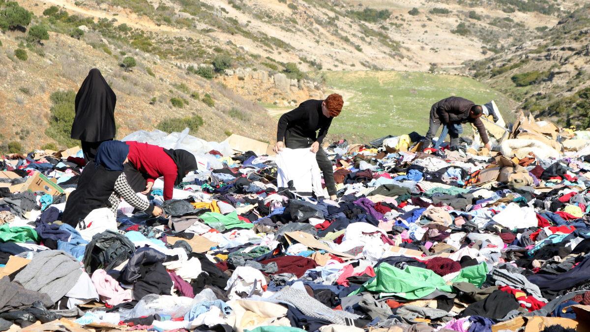 Depremzedeler de giysi yığını arasından kendilerine uygun olanı seçmeye çalıştı.