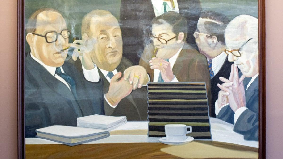 Ressam Rein Dool tarafından 1977'de yapılan ve puro içen altı erkek üniversite yöneticisini tasvir eden yağlı boya tablo, Hollanda merkezli Leiden Üniversitesi’nin duvarındaydı.