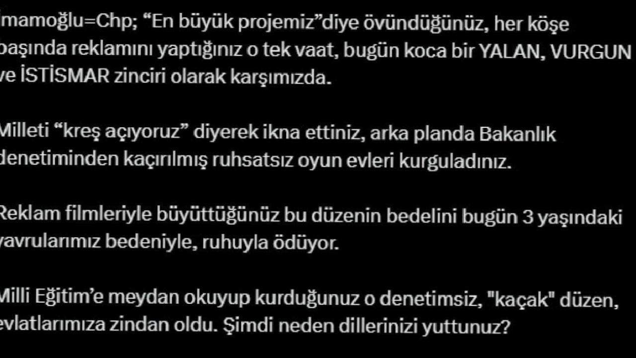 "Bu yaşananlar tek işi reklam, tek vaadi vurgun olan liyakatsiz zihniyetinizin ihanetidir. Hesap vereceksiniz" ifadelerini kullanan Acar'ın paylaşımı şu şekilde: