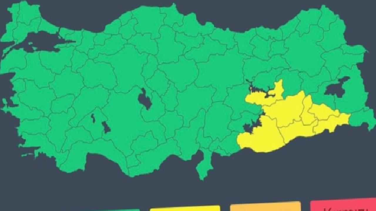 İçişleri Bakanlığı'nın sosyal medya hesabından, Meteoroloji Genel Müdürlüğünden alınan son bilgi doğrultusunda "sarı" kodla işaretlenen illerin yer aldığı Türkiye haritası paylaşıldı.