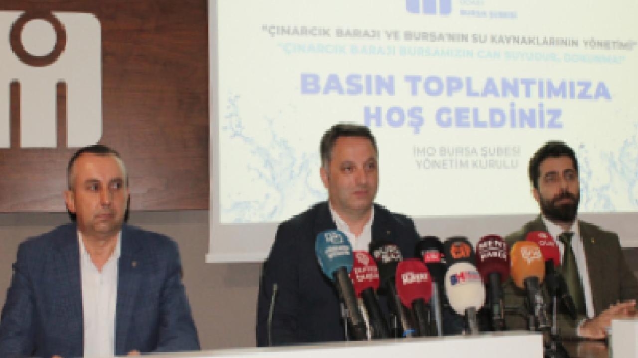 BURSA () - İnşaat Mühendisleri Odası (İMO) Bursa Şubesi Yönetim Kurulu Başkanı Serdar Atilla Erdem, Çınarcık Barajı ve Bursa’nın su kaynaklarının yönetimi konusunda Şube Konferans Salonu’nda basın açıklaması yaptı.