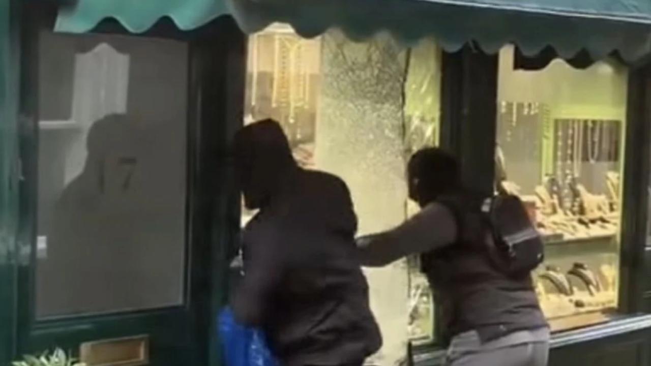 Mağazanın dışından, mücevherlerin sergilendiği vitrine yönelen saldırganlar; rafları koruyan camekanı ellerindeki aletlerle kırmaya başladı.