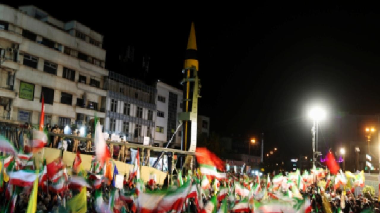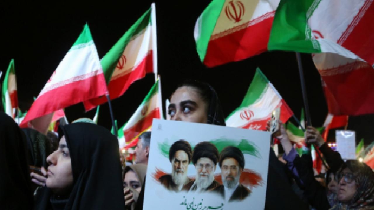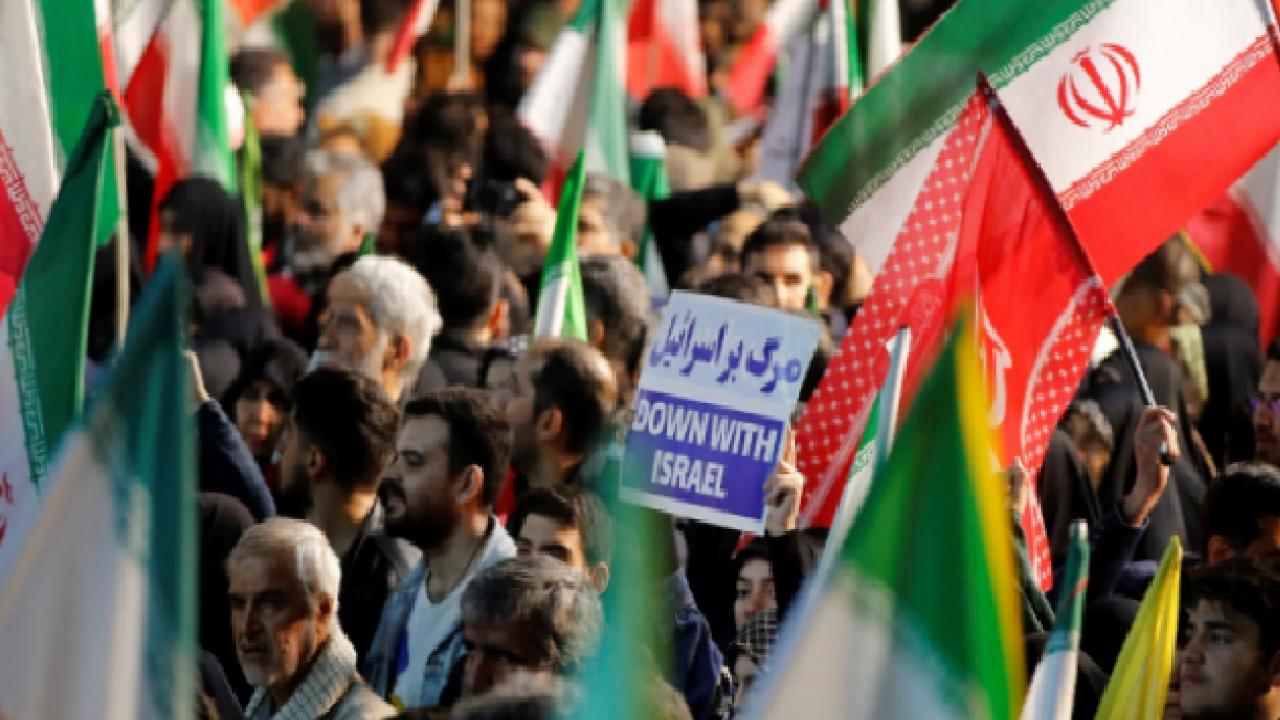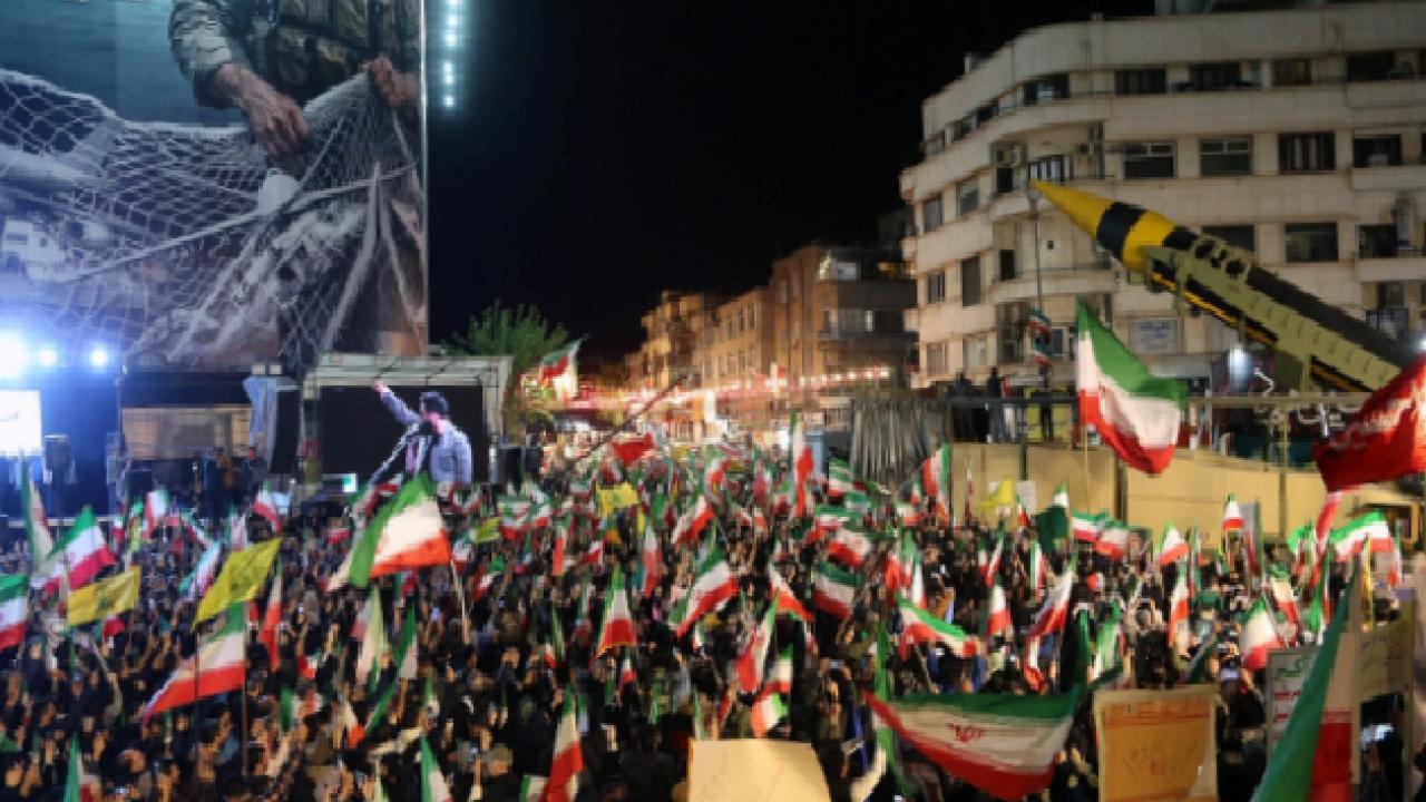 Tahran’da düzenlenen protestolarda binlerce kişi ABD ve İsrail’i hedef alırken, gösteri alanlarına balistik füzelerin getirilmesi dikkat çekti.