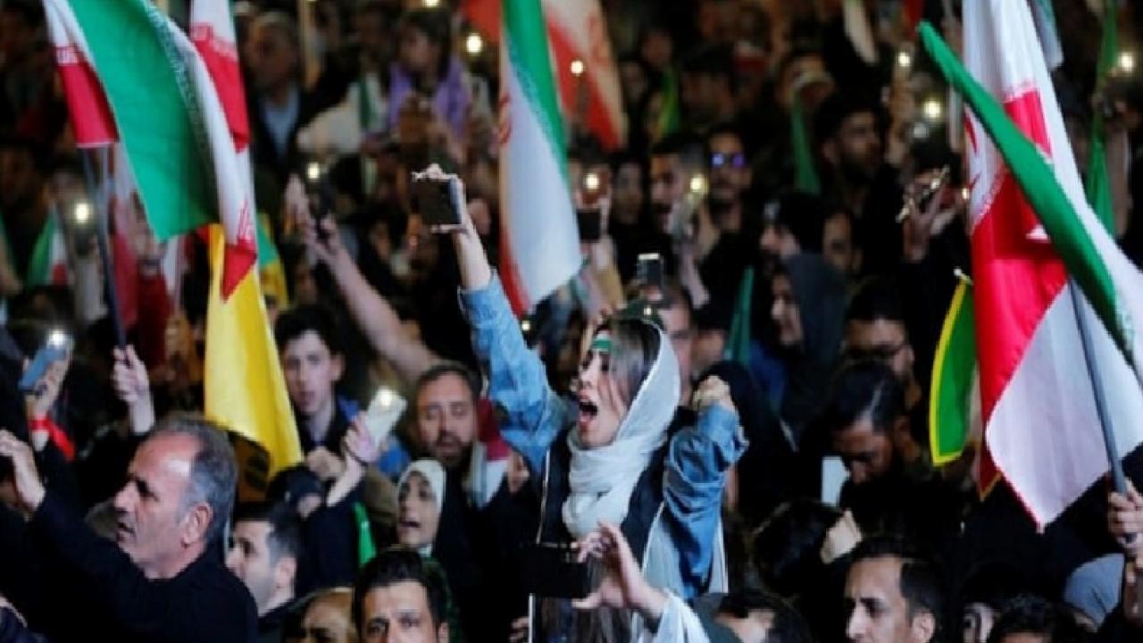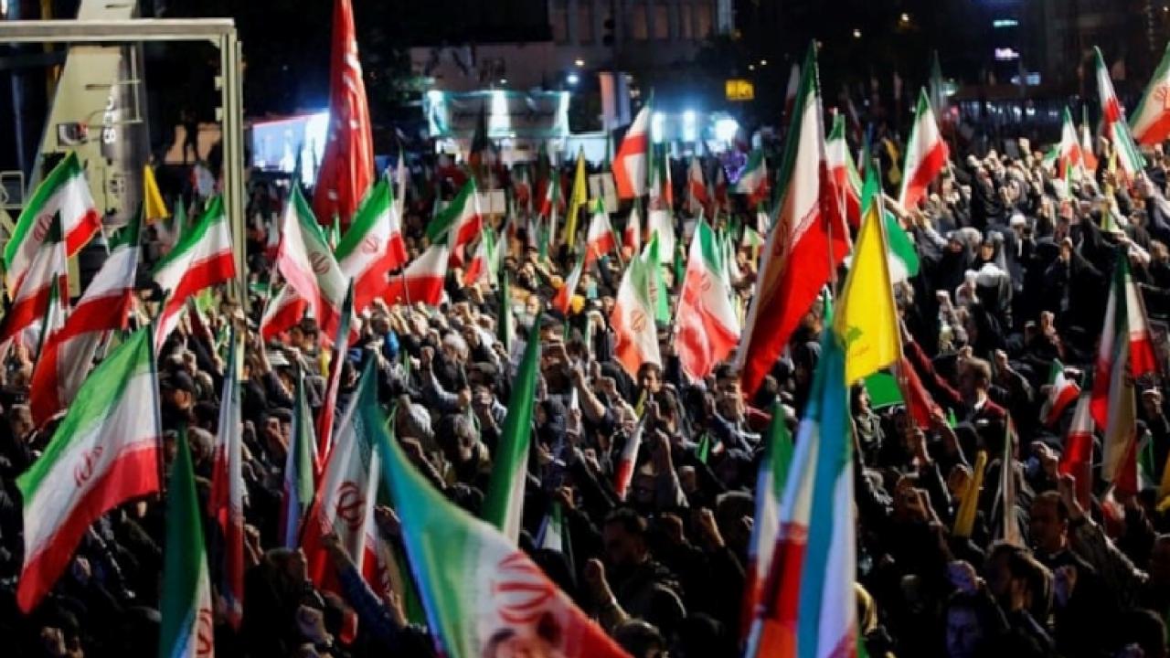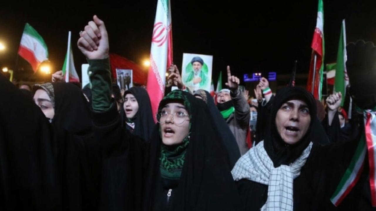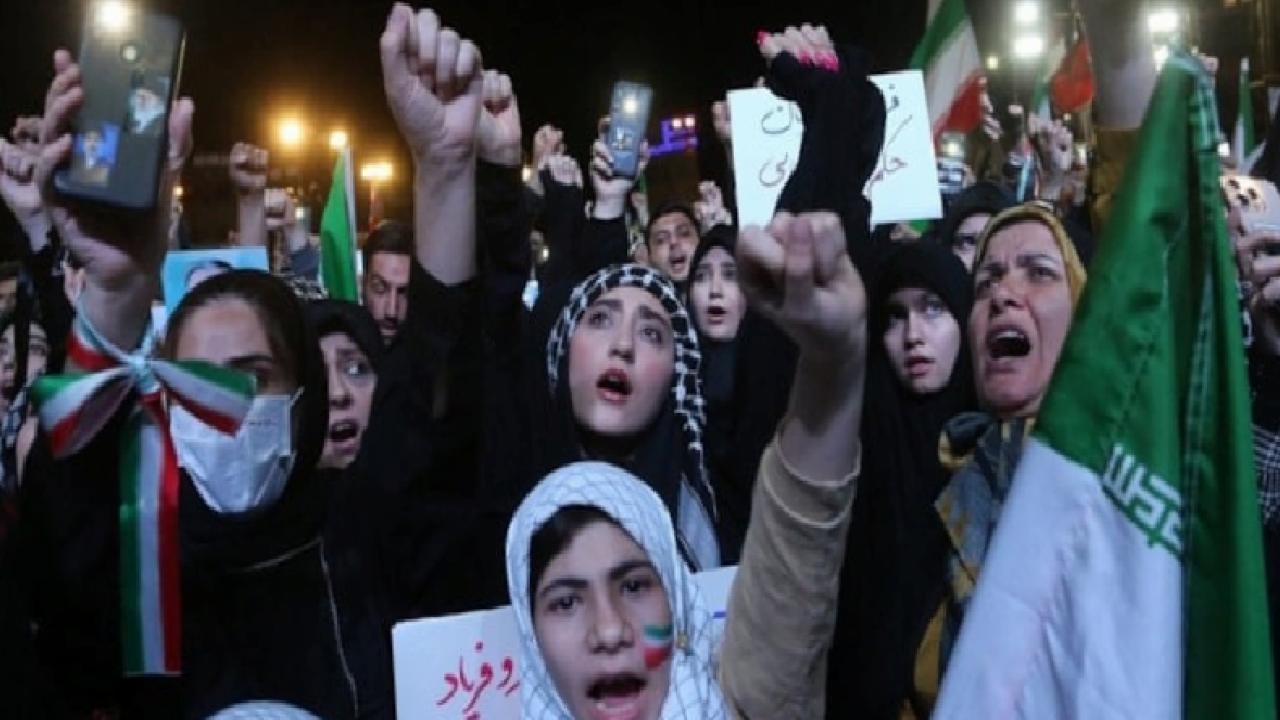 Ellerinde İran bayrakları taşıyan Tahranlılar, ABD ve İsrail aleyhine sloganlar attı.