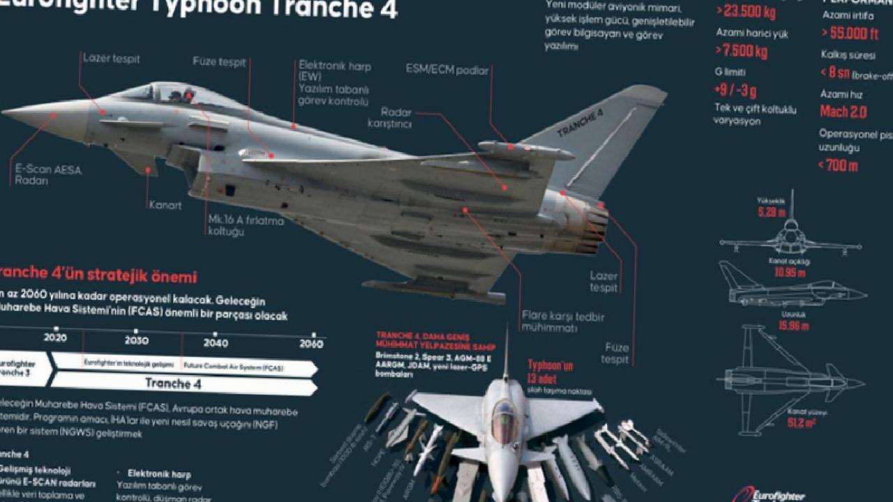 Mühimmatları, yedek parça, bakım ve teknik destek unsurları ile birlikte Türkiye, 20 adet Eurofighter Typhoon savaş uçağının alımı ile ilgili 10.7 milyar dolarlık bir anlaşma imzalamıştı.