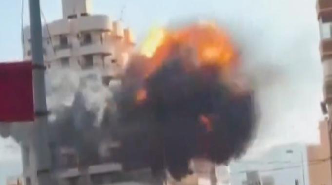 Çok katlı bir binayı hedef alan İsrail güçlerinin vurma anları kameraya yansıdı.