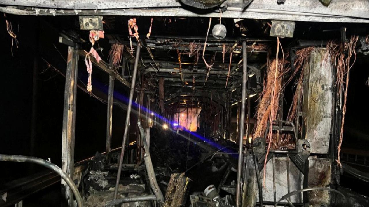 Yangın nedeniyle otobüs kullanılamaz hale geldi.
