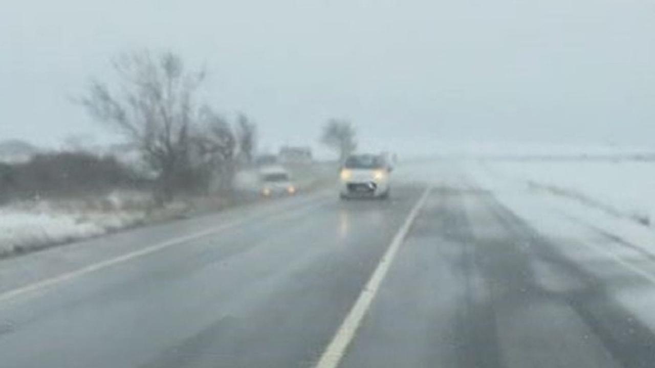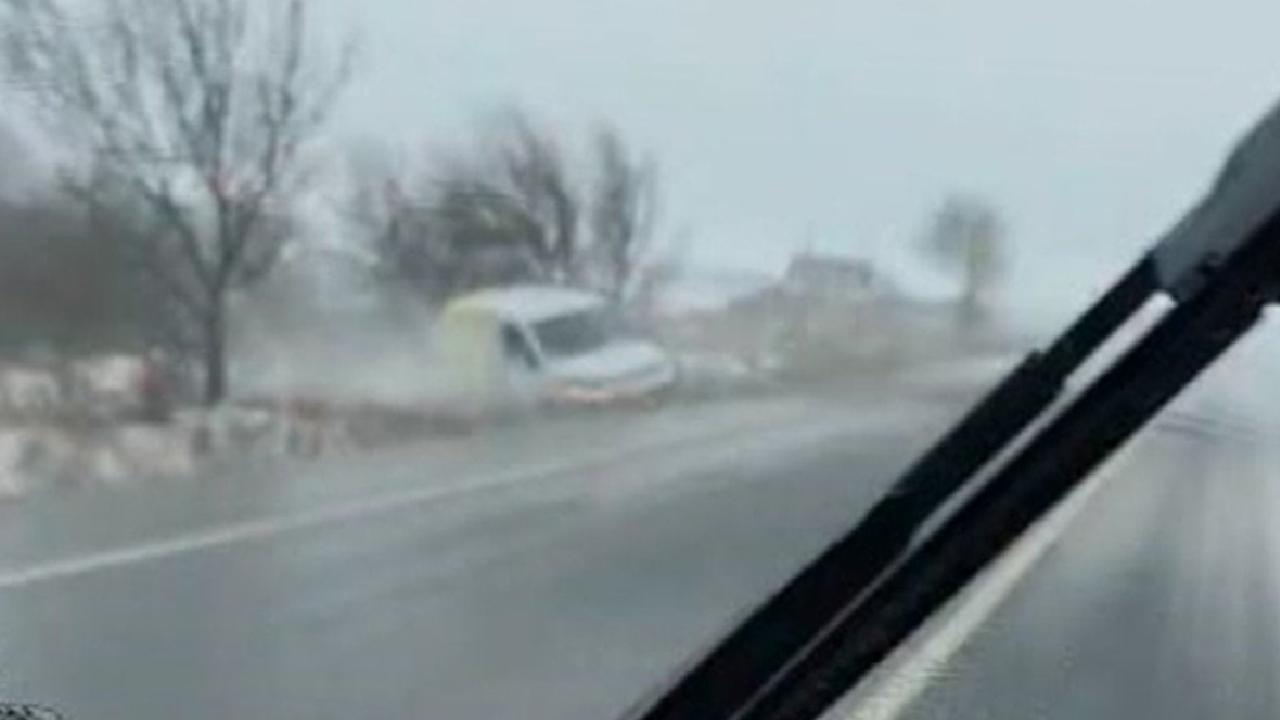 Görüntülerde aracın kayarak yoldan çıktığı anlar görülüyor.