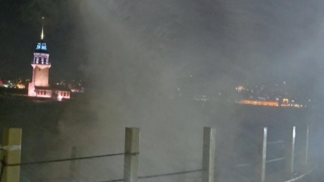 Lodosun etkisiyle sahil boyunca oluşan dalgalar dikkat çekerken Kız Kulesi'ni görmeye gelenler zor anlar yaşadı.
