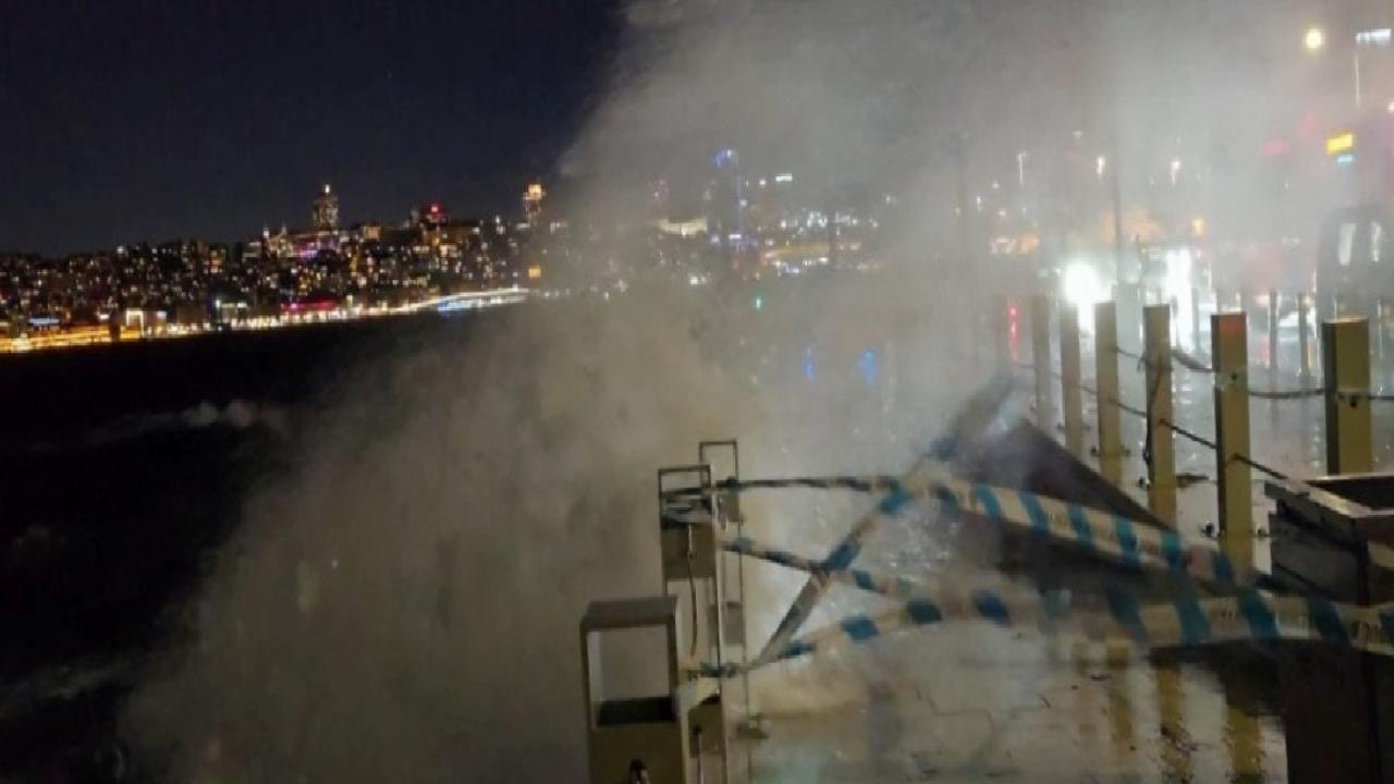 İstanbul Büyükşehir Belediyesi Afet Koordinasyon Merkezi'nin fırtına uyarısının ardından Salacak Sahili'nde dalga boyu yükselirken zaman zaman dalgaların kıyıya vurduğu görüldü.