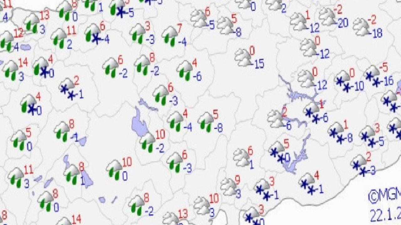 Sıcaklıkla 0 ile 5 derece civarında seyrederken, gece saatlerinden itibaren; özellikle kuzey ve yüksek kesimlerde, yerel kar sağanağı geçişlerinin yaşanması öngörülüyor.