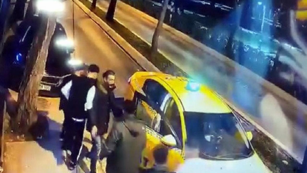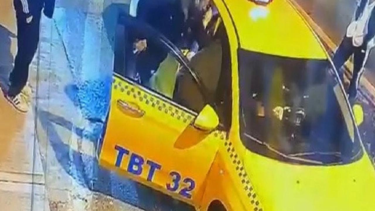 Buna sinirlenen yolculardan biri sürücü ile tartışmaya ve taksiyi tekmelemeye başladı.