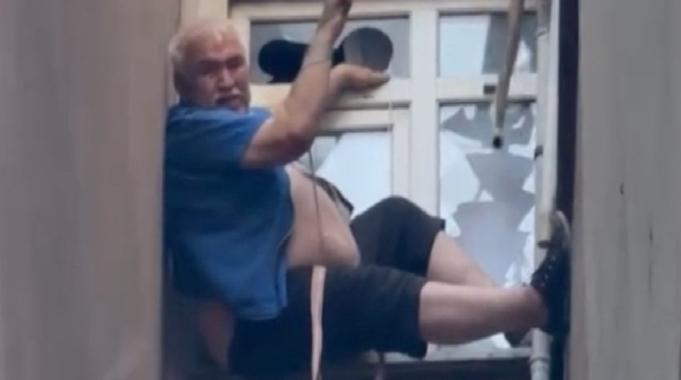 Yan dairenin penceresinden müdahale eden itfaiye ekibi, adamı güç bela kurtardı.