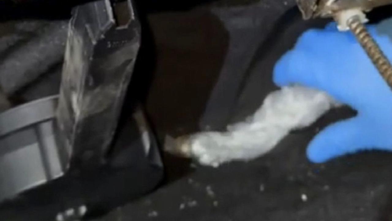 Sisteme telefon değdirerek aracın kapı kilit tuşuna uzun süre basılı tutan polis, sol arka kapının plastik kısmının öne doğru açıldığını gördü.