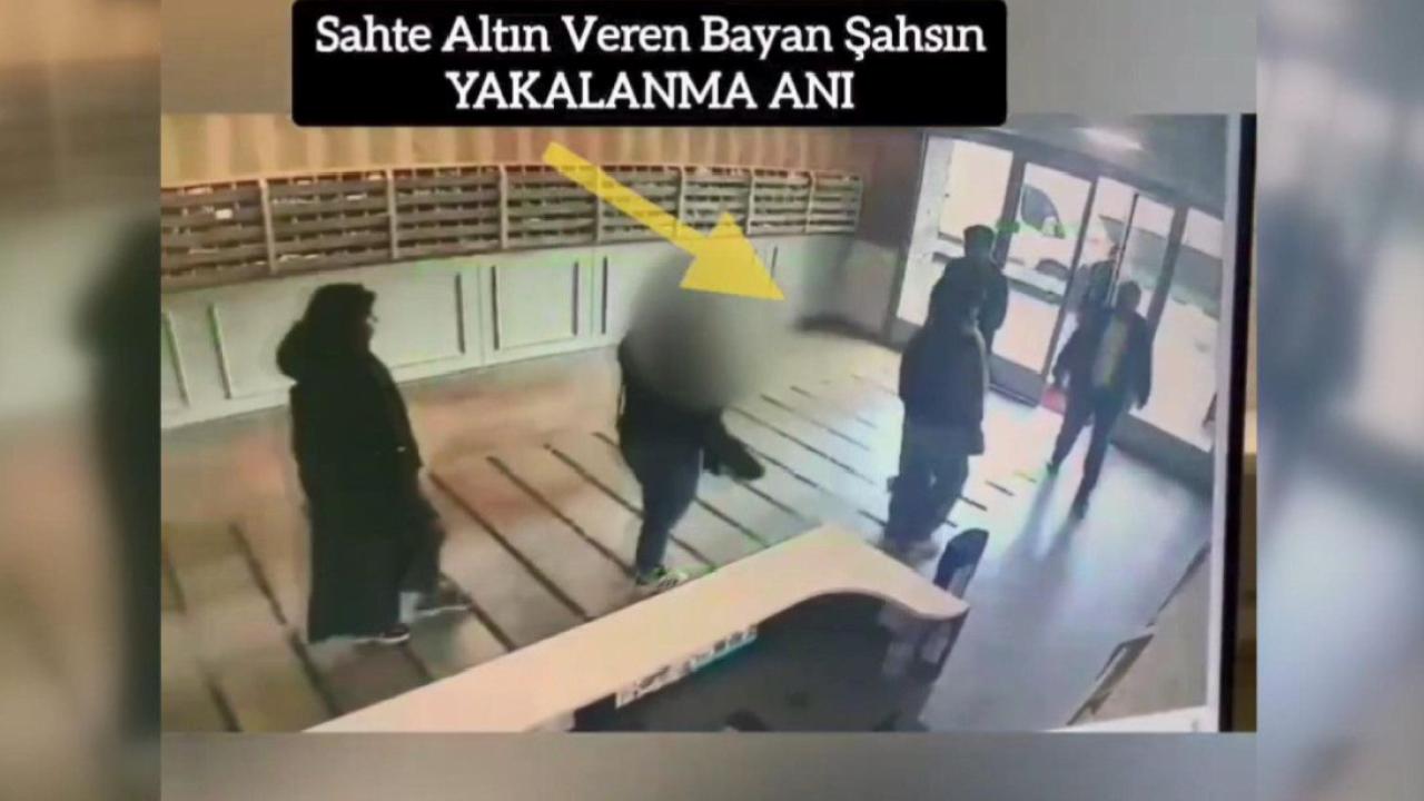 Polis ekiplerinin izini sürdüğü Seda Ö. gözaltına alınırken, şüphelinin kuyumcuya sahte altın sattığı anlar iş yerinin güvenlik kamerasına yansıdı.