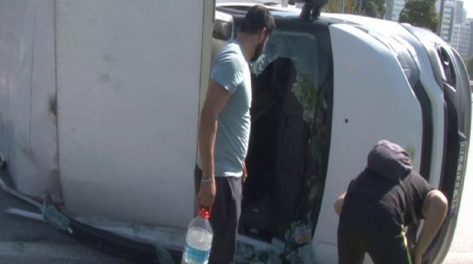 Kamyonet ise bir anda sürücünün kontrolünden çıkarak otoyola devrildi.