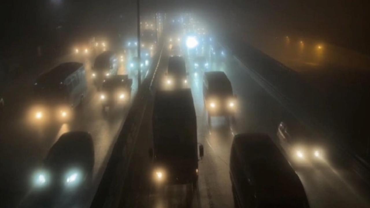 Avcılar'da ve Beyoğlu'nda sis nedeniyle görüş uzaklığı düşerken, şoförler trafikte ilerlemekte zorluk çekti.