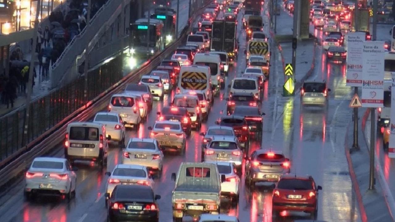 Yağışın da etkisiyle Okmeydanı'nda trafik yoğunluğu yaşandı.