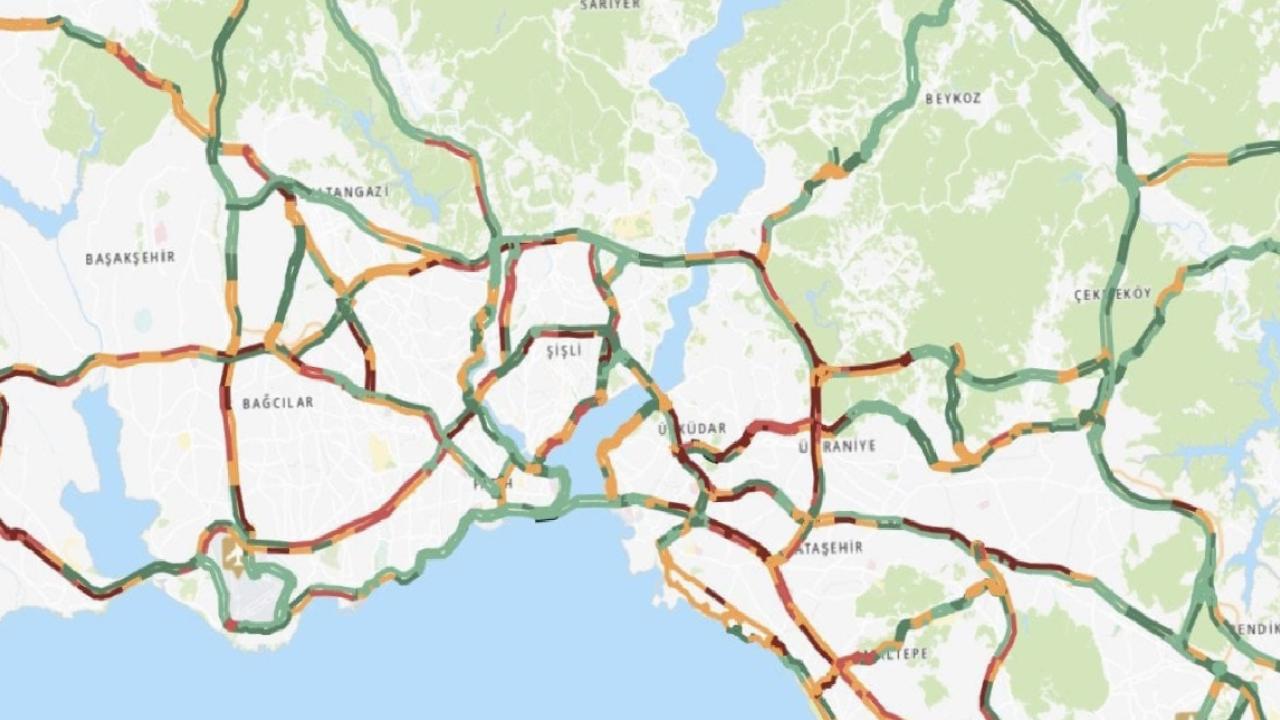 İBB trafik uygulamasına göre saat 08.50 itibarıyla trafik yoğunluğu yüzde 74 olarak ölçüldü.