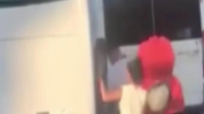 O anlar çevredeki bir vatandaşın cep telefonu ile görüntülendi. Görüntülerde, motosikletliyi sıkıştıran servis aracının o anları ve motosikletli kadının kaskla servise vurduğu anlar yer aldı.