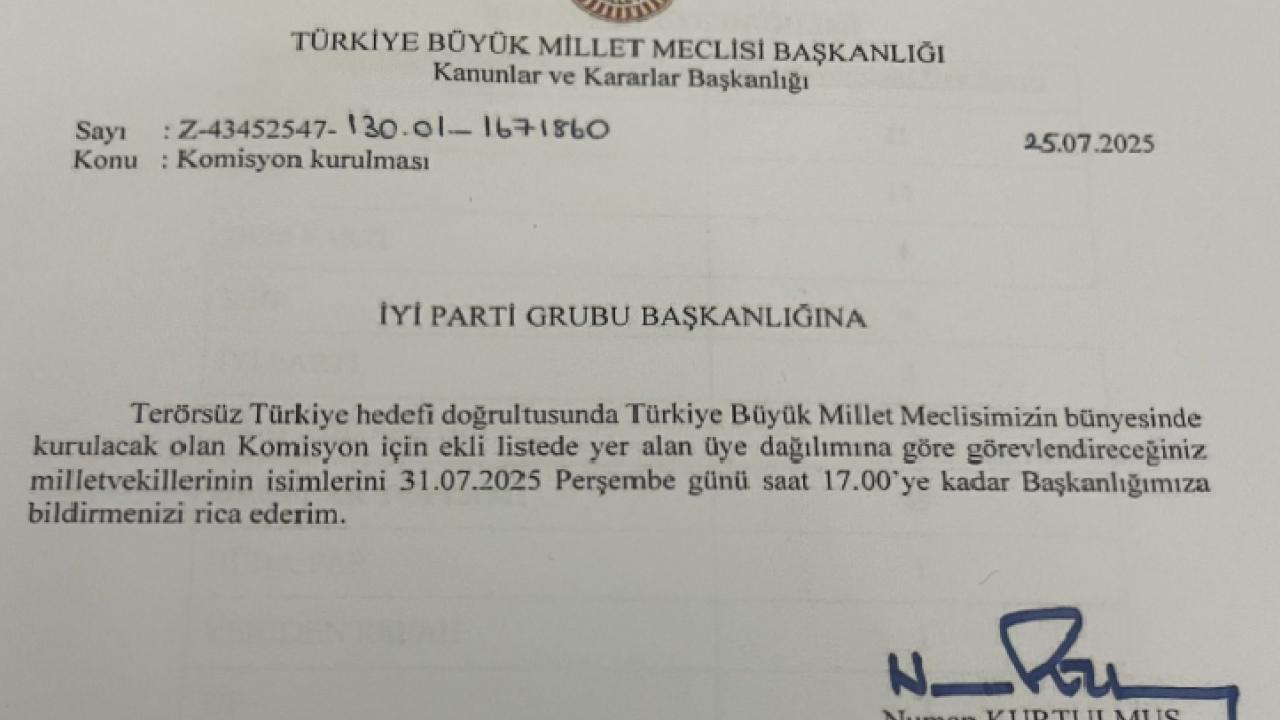 İYİ Parti Genel Başkanı Müsavat Dervişoğlu, TBMM İçtüzüğü’nde komisyonların çalışma usul ve esaslarının açıkça tanımlandığını, kuruluş sürecinde amaç, kapsam, hedef, dayanak ve sürenin net bir şekilde gerekçelendirildiğini ifade ettiğini ancak, TBMM Başkanı’nın yazısında, kurulacak komisyonun amacı, gündemi ve çalışma yöntemine dair hiçbir detayın yer almadığını vurguladı. Dervişoğlu, “Komisyon karar alacak mı? Alınacaksa, oy çokluğu mu yoksa nitelikli çoğunluk mu aranacak? Bu temel işleyiş kuralları bile belirtilmemiştir” dedi.