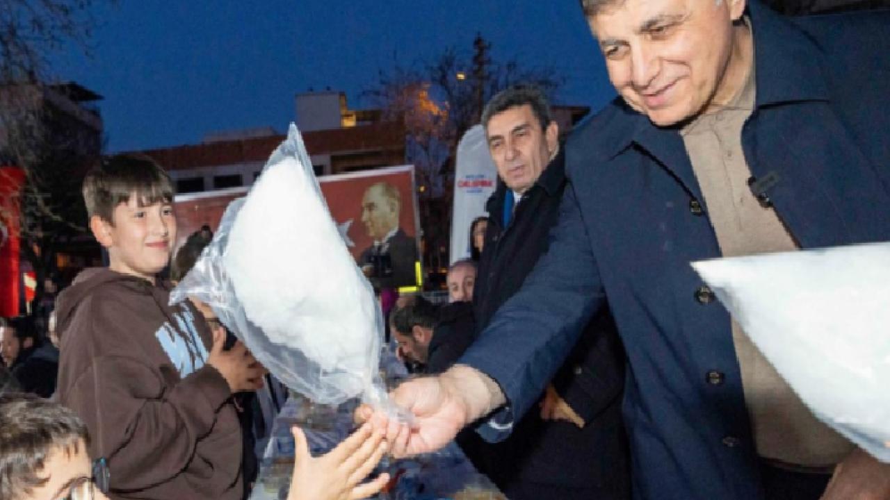 Konuşmasının ardından yurttaşlarla sohbet eden Başkan Dr. Cemil Tugay, çocuklara da pamuk şekeri verdi.