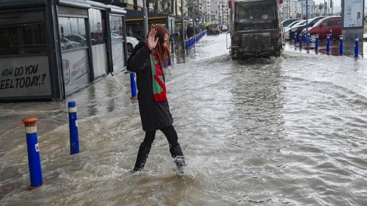 İzmir'de etkili olan sağanak, yaşamı olumsuz etkiledi.