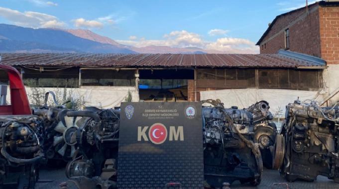 İş yerine yönelik Ödemiş Cumhuriyet Başsavcılığı koordinesinde gerçekleştirilen operasyonda, şase numarası kazınmış 5 araç motoru, trafikte görünen üstünde şase numarası takılmış 9 araç motoru ve hacizli yakalamalı motoru sökülmüş vaziyette olan 1 araç ele geçirildi.
