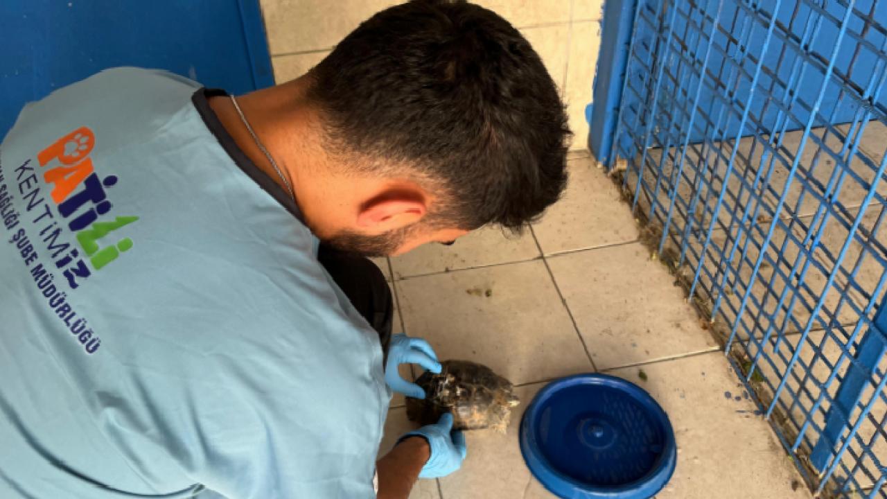 Ekipler bölgedeki yaralı bir kaplumbağaya da ilk müdahaleyi yaptı.