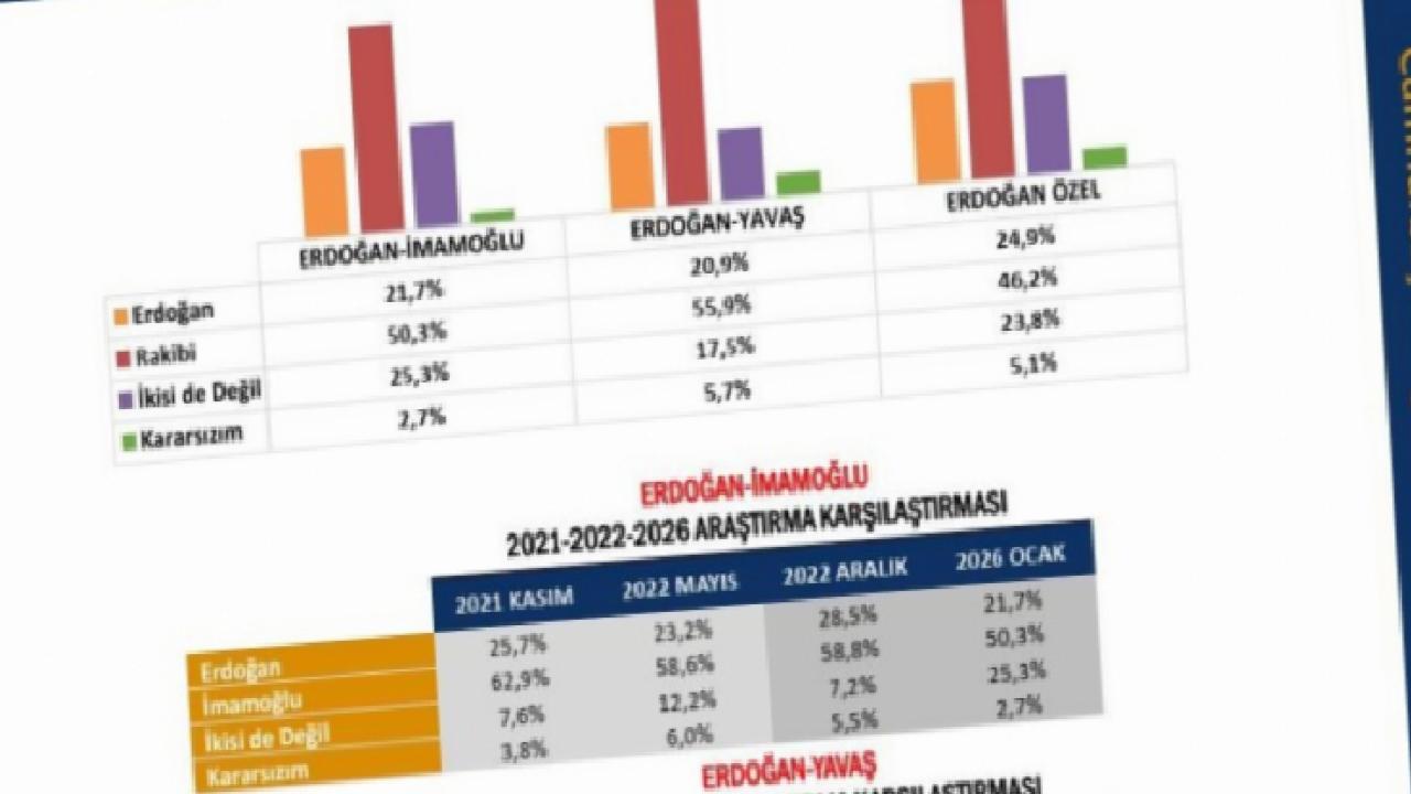 Önceki araştırmalarla karşılaştırıldığında ise özellikle Yavaş ve İmamoğlu tercihlerindeki oransal gerilemede dikkat çekerken Erdoğan’ın en iyi başlangıç puanını CHP Lideri Özgür Özel karşısında aldığı anlaşıldı.