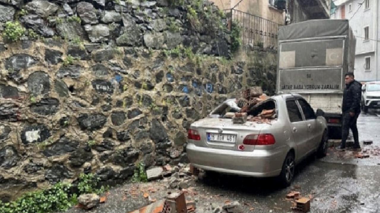 İstanbul'un Kağıthane ilçesine bağlı Talatpaşa Mahallesi Üç Budak Sokak’ta, bir evin bahçe duvarının bir bölümü henüz belirlenemeyen nedenle yıkıldı. Yıkılan duvarın parçaları, alt kısımdaki yolda park halinde bulunan aracın üzerine düştü ve aracın üst kısmında maddi hasara yol açtı.