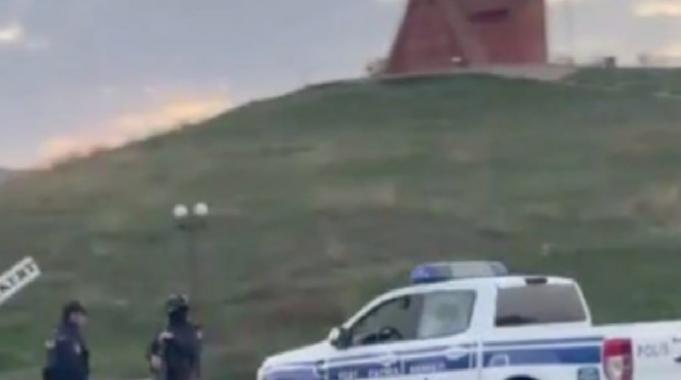 Azeri polislerinin, Ermenistan’ın Dağlık Karabağ üzerinde hak iddia ettiği ve ebediyen kalıcıyız mesajı vermek için yapılan heykelin önünde devriyede bulundukları an dikkat çekti.