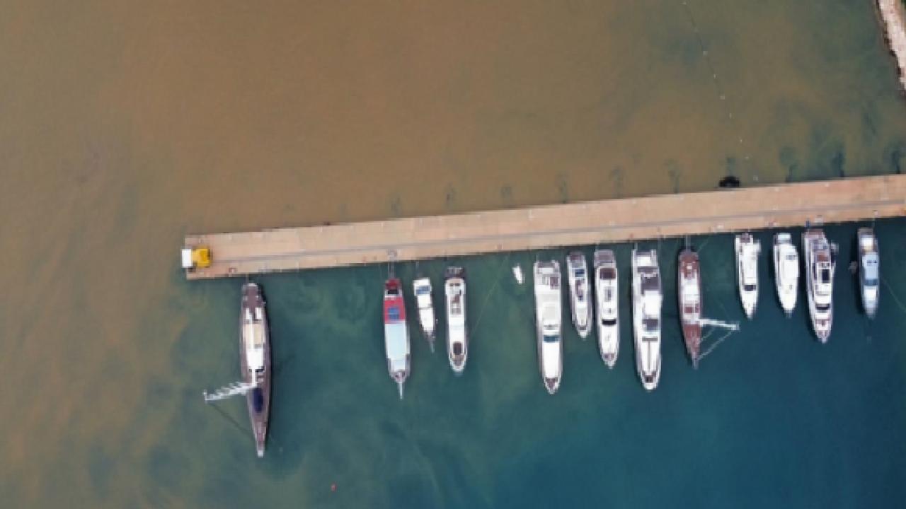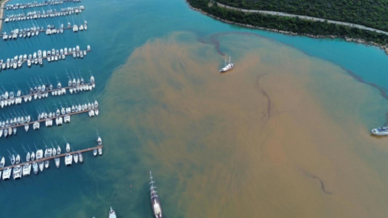 Öte yandan mavinin kahverengiyle karıştığı deniz dronla görüntülendi.