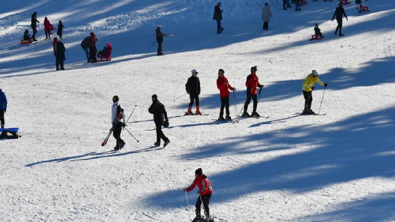 Uygun hava koşulları ve yeterli kar kalınlığı sayesinde kayak merkezlerine gelen ziyaretçiler kayak, snowboard ve kızakla keyifli vakit geçiriyor.