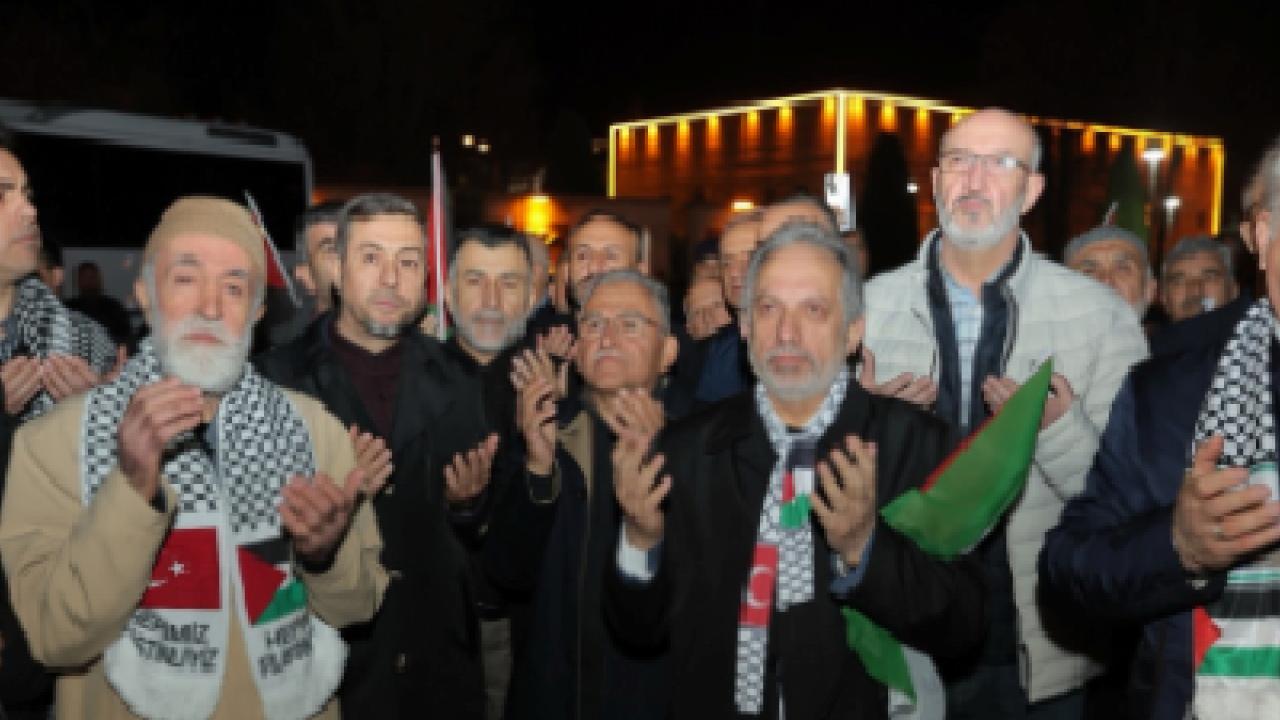 Büyükkılıç, zulme karşı dik duruş vurgusu yaparak, “Mazlum coğrafyaların sesi olmak, zulme karşı dimdik durmak ve kardeşlerimizin yanında olduğumuzu haykırmak için bir aradaydık. Çünkü biz biliyoruz ki; sessiz kalmak, zulme ortak olmaktır. Dualarımız, kalbimiz ve desteğimiz daima Filistin halkıyla” diye konuştu.