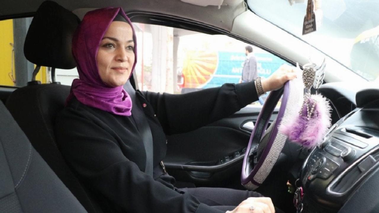 Kayseri'de yaşayan Nuriye Çay, şoförlerinin işi bırakması üzerine eşine yardım etmek için taksinin direksiyonuna geçti.