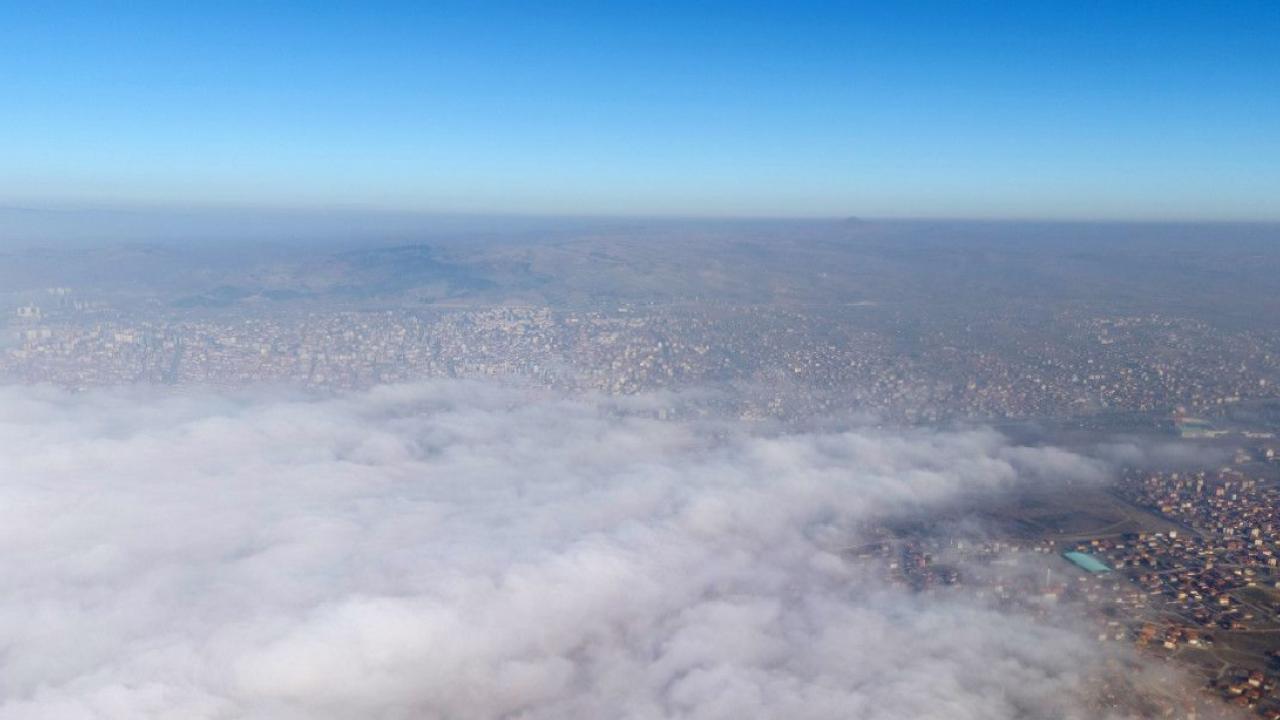 Oluşan manzara, dron ile görüntülenerek sisin kent genelindeki etkisi gözler önüne serildi.