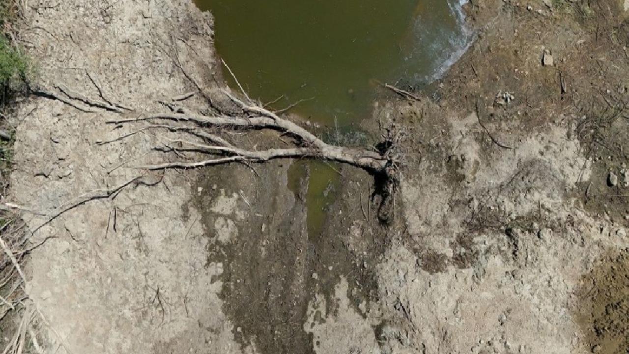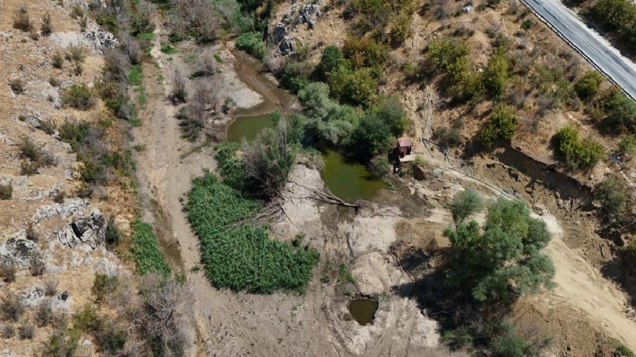 Suyu çekilen dere yatağında çatlaklar oluşurken, derenin bazı bölgelerinde ise otların yeşerdiği gözlemlendi.